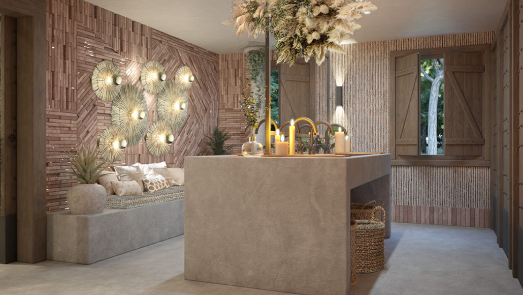 Su interiorismo potencia la esencia de la finca incorporando materiales rústicos,