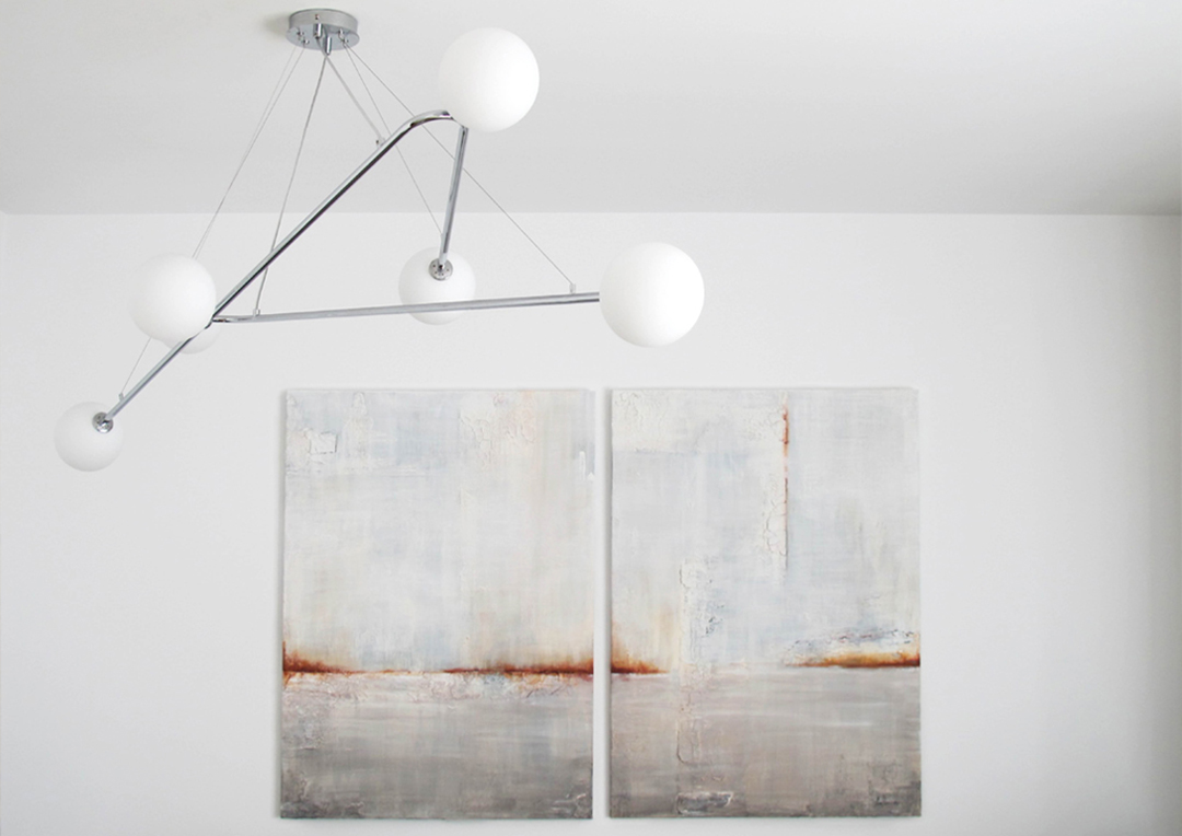 Tratamos su gran lámpara como una pieza de arte otorgándole el protagonismo que se merece. Para nosotras las luminarias son verdaderas esculturas y son las estrellas de nuestro interiorismo.