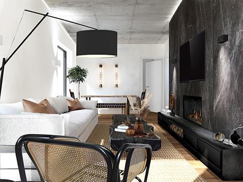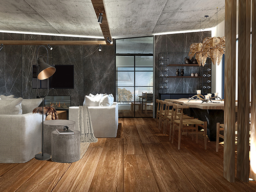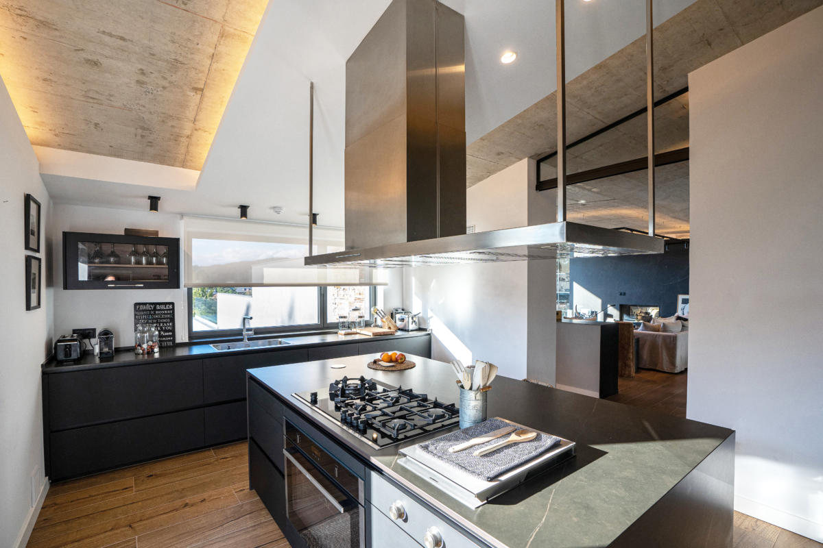 El contraste de los materiales cobra especial importancia en el proyecto y sirven de marco para acoger un diseño armónico de mobiliario adaptado a todas las necesidades, una vez más funcionalidad y diseño van de la mano.