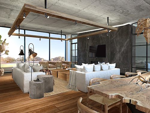 El lenguaje minimalista y estructuralista de la vivienda sirve de guion para desarrollar el prólogo del interiorismo. La base proyectual ha sido la naturaleza, que entra en la vivienda a través de grandes ventanales, cobrando vida propia.