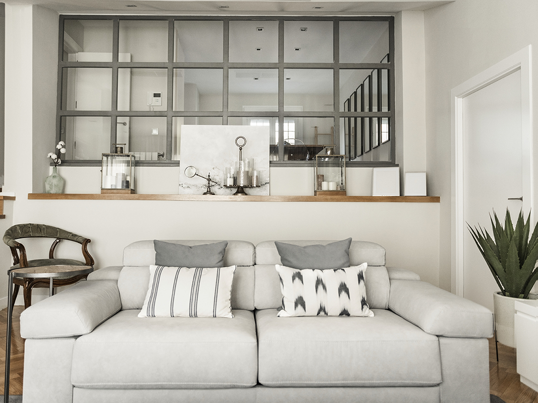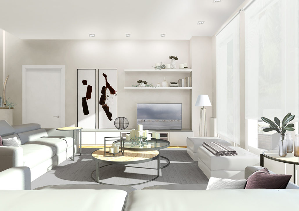 Proyecto de decoración mezcla de estilos en vivienda nueva. Con tonos neutros en sus muebles y paredes, existen las pinceladas de color en su decoración, se convierte en un hogar luminoso y lleno de vida.